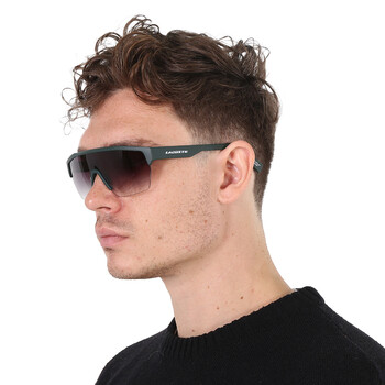 Lacoste Sunglasses. Series number: L989S. Color code: 301. Shape: Shield. Lens Width: 62 mm. Lens Bridge: 19 mm. Arm Length: 135 mm. 100% UV protection. Frame Material: Plastic. Frame Color: Matte Green. Lenses Type: Grey Gradient. Rim Style: Semi-Rimless. UPC/EAN code: 886895570749. Lacoste Grey Gradient Shield Men's Sunglasses L989S 301 62.