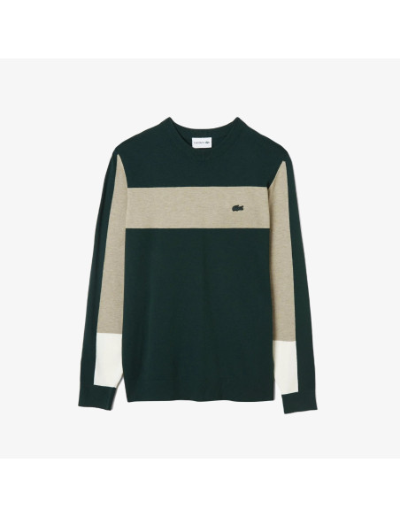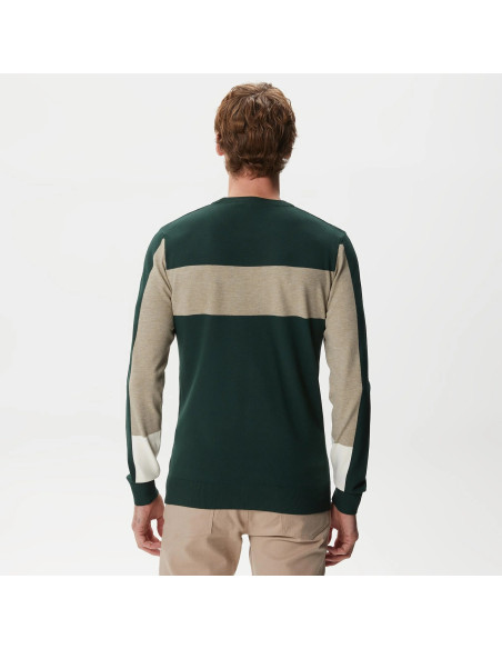 Lacoste - Lacoste Men's Regular Fit Crew Neck Color Blocked Green Knitwear