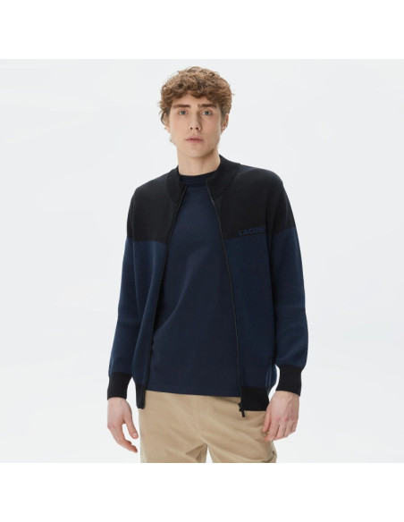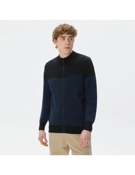 Lacoste - Lacoste Men's Regular Fit Long Sleeve Stand Collar Color Blocked Dark Gray...