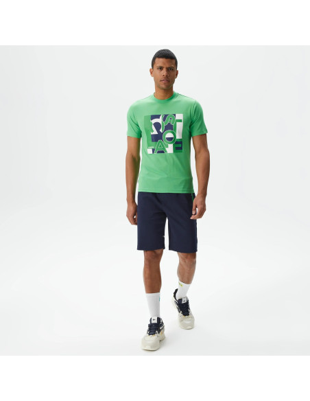 Lacoste - Lacoste Men's Slim Fit Crew Neck Printed Green T-Shirt