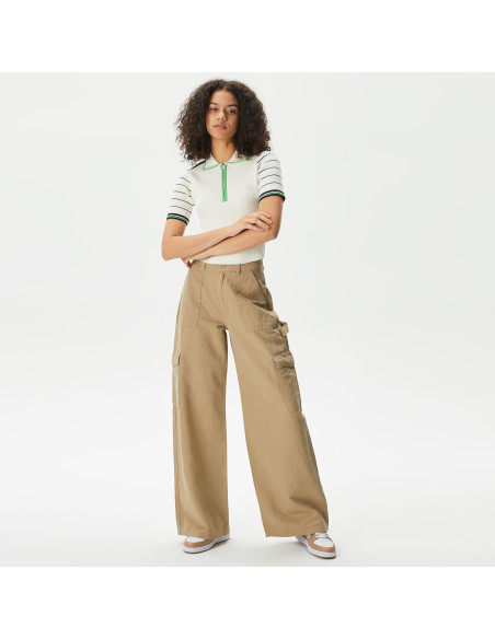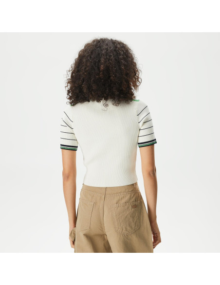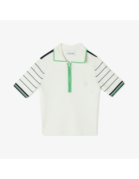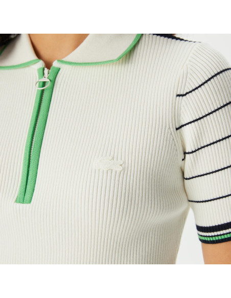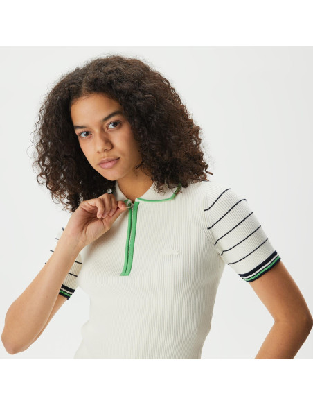 Lacoste - Lacoste Women's Relaxed Fit Zippered Color Blocked White Knitwear