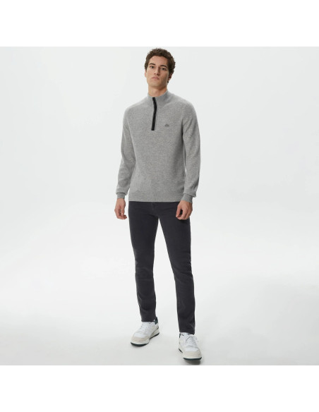 Lacoste - Lacoste Men's Regular Fit Stand Collar Color Blocked Wool Navy Blue Knitwear