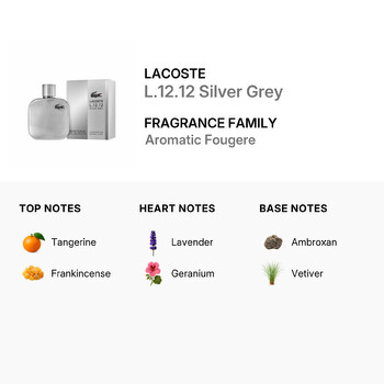 Part of the Aromatic Fougere family, L.12.12 Silver Grey opens with a bright burst of tangerine and the subtle smokiness of frankincense. At its heart, calming lavender and fresh geranium create a crisp, clean sensation that’s both inviting and energizing. The base notes of ambroxan and vetiver bring warmth and depth, leaving a smooth, long-lasting trail that enhances your presence all day.
