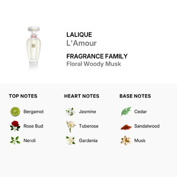 Experience the captivating allure of Lalique's L'Amour Extrait de Parfum. This enchanting fragrance for ladies is a signature creation from Lalique, a renowned design house known for its distinctive and opulent creations. Launched in 2013, L'Amour is a mesmerizing blend of floral and woody notes that manifests an air of sophistication and elegance.