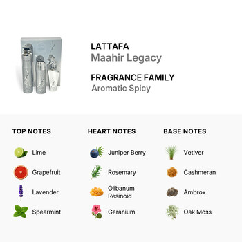 Elevate your everyday style with the captivating charm of Lattafa Maahir Legacy for Men. Crafted by the renowned Middle Eastern fragrance house Lattafa, this aromatic spicy scent is designed for the modern man who leaves a lasting impression. Made in the United Arab Emirates, Maahir Legacy is more than just a fragrance—it's a signature of sophistication and strength.