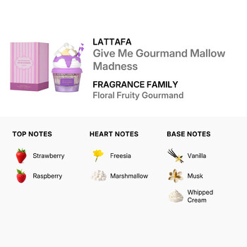 Only available for shipment within the Contiguous United States and Canada, Give Me Gourmand Mallow Madness by Lattafa is a must-have for fragrance lovers who crave something sweet, unique, and unforgettable. Elevate your scent game with a touch of Middle Eastern elegance and a swirl of marshmallow magic.
