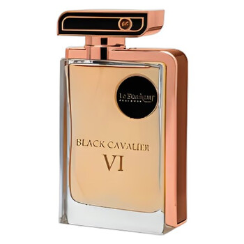 Launch year: 2024. Fragrance Family: Woody Floral Musk. Top notes: Bergamot, Ginger. Heart notes: Sage, Violet. Base notes: Cedarwood, Sandalwood, Patchouli. Design house: Le Bonheur. Design house category: middle eastern fragrance. Design house country: Saudi Arabia. Scent name: Black Cavalier VI. Gender: Mens. Category: Fragrance. SubType: EDP Spray. Size: 3.4 oz. Barcode: 6288002800161. Le Bonheur Men's Black Cavalier VI EDP Spray 3.4 oz Fragrances 6288002800161.