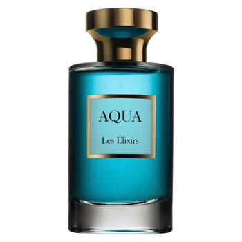 Launch year: 2020. Fragrance Family: Woody Aquatic. Top notes: Cardamom, Mandarin orange, Pear, Melonal. Heart notes: Saffron, Black pepper, Ozonic notes. Base notes: Woody notes, Lichen, Musk, Amber. Design house: Les Elixirs. Design house category: niche fragrance brand. Design house country: United States. Scent name: Aqua. Gender: Unisex. Category: Fragrance. SubType: EDP Spray. Size: 3.4 oz. Barcode: 614234168803. Les Elixirs Unisex Aqua EDP Spray 3.4 oz Fragrances 614234168803.