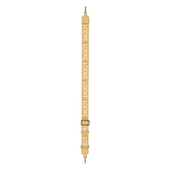 Loewe Ladies Bag Accessories. SKU: C073T87X01.6715. Barcode: 8445555455998. Color: Sahara. Loewe Anagram Strap In Jacquard And Calfskin - Sahara. Crafted from calfskin and jacquard, this piece features a LOEWE pattern on one side and an Anagram pattern on the reverse. It is designed with hook fastenings, a detachable and adjustable strap, and is finished with an embossed Anagram. 4cm wide, 65cm-100cm long. Main material : Jacquard/Calf Leather. Made in Spain.