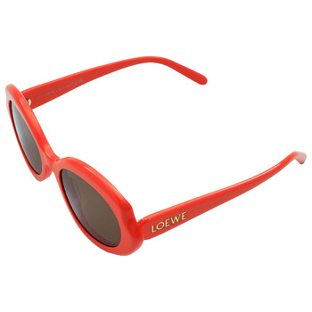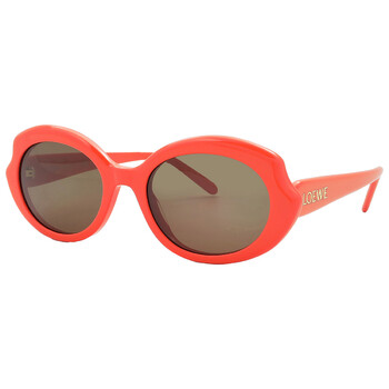 Loewe Sunglasses. Series number: LW40147I. Color code: 42E. Shape: Oval. Lens Width: 54 mm. Lens Bridge: 20 mm. Arm Length: 140 mm. 100% UV protection. Non-Polarized. Frame Material: Acetate. Frame Color: Shiny Orange. Lenses Type: Brown. Rim Style: Full-Rim. UPC/EAN code: 192337179150. Loewe Brown Oval Ladies Sunglasses LW40147I 42E 54.