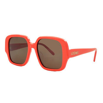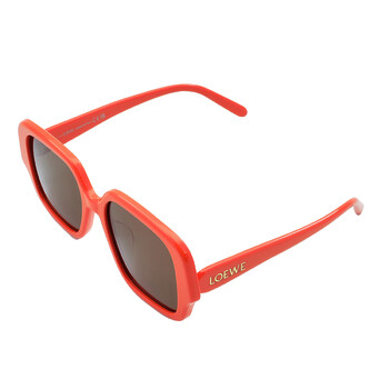Loewe Sunglasses. Series number: LW40134U. Color code: 42E. Shape: Square. Lens Width: 54 mm. Lens Bridge: 18 mm. Arm Length: 140 mm. 100% UV protection. Non-Polarized. Frame Material: Acetate. Frame Color: Shiny Orange. Lenses Type: Brown. Rim Style: Full-Rim. UPC/EAN code: 192337181238. Loewe Brown Square Ladies Sunglasses LW40134U 42E 54.