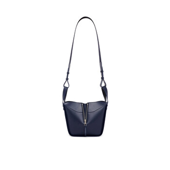 Loewe Ladies Handbag. SKU: A538H13X26.4467. Barcode: 8445555455202. Color: Abyss Blue. Size: Height 20.8 cm x Width 14.4 cm x Depth 19.5 cm. Loewe Compact Hammock Bag - Abyss Blue. Crafted from satin calfskin, this Compact Hammock bag features flexible side panels that adjust its shape. It offers versatile carrying options—shoulder, crossbody, or top handle. The bag includes a detachable, adjustable jacquard tonal strap, an internal hook closure, an external zip pocket, and two internal slip pockets. Finished with herringbone cotton canvas lining and an embossed Anagram for a signature touch. Main material : Satin Calf Leather, Made in Spain.