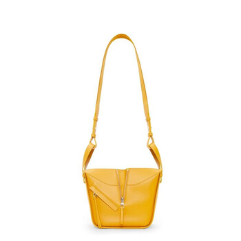 Loewe Ladies Handbag. SKU: A538H13X26.8478. Barcode: 8445555340379. Color: Sunflower. Size: Height 20.8 cm x Width 14.4 cm x Depth 19.5 cm. Loewe Compact Hammock Bag - Sunflower. Crafted from satin calfskin, this Compact Hammock bag features flexible side panels that adjust its shape. It offers versatile carrying options—shoulder, crossbody, or top handle. The bag includes a detachable, adjustable jacquard tonal strap, an internal hook closure, an external zip pocket, and two internal slip pockets. Finished with herringbone cotton canvas lining and an embossed Anagram for a signature touch. Main material : Satin Calf Leather, Made in Spain.