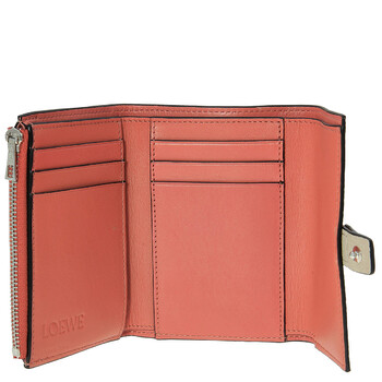 Loewe Ladies Wallets. SKU: C660S86X01.2463. Barcode: 8432902894104. Color: Light Oat/Honey. Size: H: 3" x W: 4.7" x D: 1". Loewe Grained Calfskin Small Vertical Wallet. This sleek vertical wallet, made from soft-grained calfskin, includes six card slots, two small pockets, a larger pocket, a zipped coin compartment, a snap button closure, a calfskin lining, and a signature embossed Anagram. Material: 100% Leather. Made in Spain.