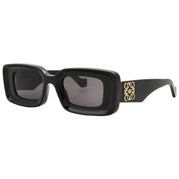 Loewe Sunglasses. Series number: LW40101I. Color code: 01A. Shape: Rectangular. Lens Width: 46 mm. Lens Bridge: 22 mm. Arm Length: 140 mm. 100% UV protection. Non-Polarized. Frame Material: Acetate. Frame Color: Black. Lenses Type: Grey. Rim Style: Full-Rim. UPC/EAN code: 192337118555. Loewe Grey Rectangular Ladies Sunglasses LW40101I 01A 46.