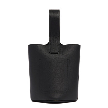 Loewe Ladies Bucket Bag. SKU: AANBBBMX02.1100. Color: Black. Size: H:19.5cm x W:16cm x D:16cm. Loewe Mini Pebble Bucket Calfskin Bag. This bucket bag features an adjustable and removable strap, magnetic closure, internal pocket, bonded leather lining, and an Anagram engraved Pebble. 100% Calfskin. Made in Spain.