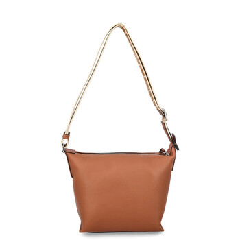 Loewe Men's Crossbody. SKU: B906Q63X04.2530. Color: Tan. Size: W:29.5cm x H:22cm x D:10.5cm. Loewe Small Cubi Calfskin Crossbody. This crossbody bag features an adjustable LOEWE jacquard strap, zip closure with a calfskin pull, one internal slip pocket, herringbone cotton canvas lining, and an embossed Anagram. 100% Calf Leather. Made in Portugal.