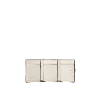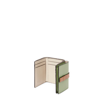 Loewe Ladies Wallets. SKU: C660TR2X01.6465. Barcode: 8445555005766. Color: Rosemary/Tan. Size: Height 7.8cm x Width 10.2cm x Depth 3.8cm. Loewe Trifold Calfskin Wallet - Rosemary/Tan. Crafted from soft grained calfskin, this wallet features six card slots, one large pocket, and a coin compartment with a snap button closure. Its trifold design includes calfskin lining and is finished with an embossed Anagram. Main material: Soft Grained Calf Leather. Made in Spain.