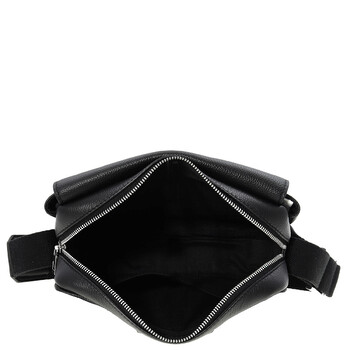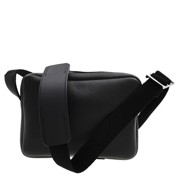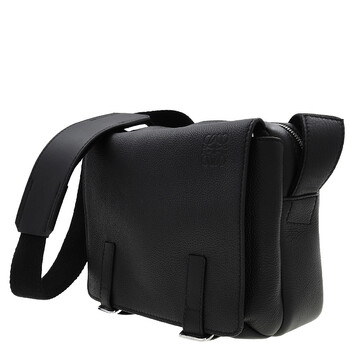 Loewe Men's Messenger. SKU: B553A72X22.1100. Barcode: 8445555132295. Color: Black. Size: Height 18cm x Width 23cm x Depth 9cm. Loewe XS Military Messenger Bag - Black. The LOEWE Military Messenger Bag is a refined accessory crafted from soft grained calfskin leather. It features a double leather tab, offering both shoulder and crossbody carry options. The bag includes an adjustable webbing strap, a zip closure, a front pocket with magnetic closure, and an internal slip pocket. The interior is lined with herringbone cotton canvas, and the front is adorned with an embossed Anagram logo. Main material : Soft Grained Calf Leather. Made in Portugal.
