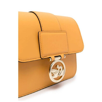 Longchamp Ladies Crossbody. SKU: 10174HAU222. Color: Yellow. Size: L: 7.1 in × H: 5.5 in × W: 3.3 in. Longchamp Box-Trot Logo Plaque Crossbody Bag. This crossbody features metallic hardware, an adjustable strap, a zipped pocket, contrasting trim, a logo plaque, a debossed logo on the rear, a foldover top, an internal zip-fastening pocket, and a concealed magnetic fastening. Material : Calfskin leather.