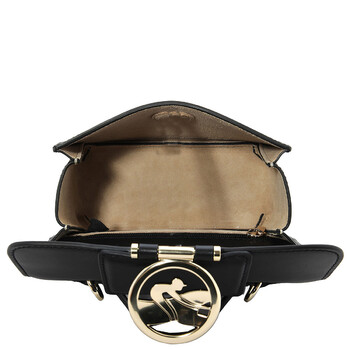 Longchamp Ladies Crossbody. SKU: 10180HAU001. Color: Black. The Longchamp Box-Trot XS Crossbody Bag combines elegance and practicality in a compact design. Featuring a detachable shoulder strap for versatile wear, a secure magnetic button closure, and a striking XXL gold medal detail, it’s both stylish and functional. The interior includes a zipped pocket to keep essentials organized. Size: 6.7 in (L) x 4.7 in (H) x 3.1 in (W).