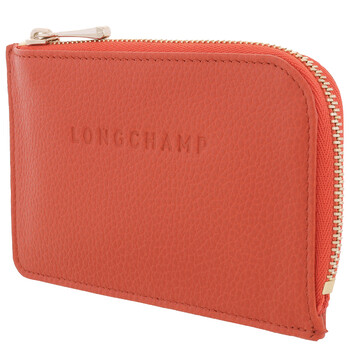 Longchamp Ladies Card Case. SKU: 30036021685. Color: Paprika. Size: L:5.1" x H:3.1". Longchamp Le Volonte Calf Leather Card Holder. This card holder features a front logo embossed with tonal stitching, a full zip closure, back card slots, and logo jacquard lining. 100% Calf leather. Made in France.