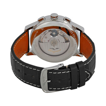 Stainless steel case with a black leather strap. Fixed stainless steel bezel. Beige dial with silver-toned hands and index hour markers. Minute markers around the outer rim. Dial Type: Analog. Luminescent hands and markers. Date display between 4 and 5 o'clock position. Chronograph - three sub-dials displaying: 60 second, 30 minute and 12 hour. Automatic movement. Scratch resistant sapphire crystal. Screw down crown. Skeleton case back. Case diameter: 41 mm. Round case shape. Deployment clasp. Water resistant at 30 meters / 100 feet. Functions: chronograph, date, hour, minute, second. Luxury watch style. Watch label: Swiss Made. Longines Column Wheel Record Chronograph Beige Dial Leather Men's Watch L47544724.