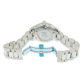 Stainless steel case with a stainless steel bracelet. Fixed stainless steel bezel. Blue dial with silver-tone hands and index hour markers. Arabic numerals mark the 6 and 12 o'clock positions. Minute markers around the outer rim. Dial Type: Analog. Luminescent hands and markers. Date display at the 3 o'clock position. Longines calibre L619/888 automatic movement, based upon ETA 2892, containing 21 Jewels, bitting at 25200 vph, and has a power reserve of approximately 64 hours. Scratch resistant sapphire crystal. Screw down crown. Solid case back. Round case shape. Case size: 41 mm. Case thickness: 11.5 mm. Band width: 22 mm. Fold over clasp with a push button release. Water resistant at 300 meters / 1000 feet. Functions: date, hour, minute, second. Conquest Series. Dive watch style. Watch label: Swiss Made. Longines Conquest Automatic Blue Dial Men's 41 mm Watch L3.777.4.99.6.