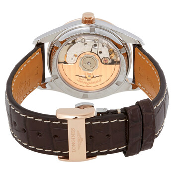 Stainless steel case with a brown leather strap. Fixed 18kt rose gold bezel. Mother of pearl dial with luminous rose gold-tone hands and diamond hour markers. Minute markers around the outer rim. Dial Type: Analog. Luminescent hands. Date display at the 3 o'clock position. Longines calibre ETA A31.L01, L888 automatic movement with a 42-hour power reserve. Scratch resistant sapphire crystal. Pull / push crown. Transparent case back. Case size: 34 mm. Case thickness: 11.5 mm. Round case shape. Band width: 17 mm. Fold over clasp. Water resistant at 50 meters / 165 feet. Functions: date, hour, minute, second. Dress watch style. Watch label: Swiss Made. Longines Conquest Classic Automatic Watch L23855873.