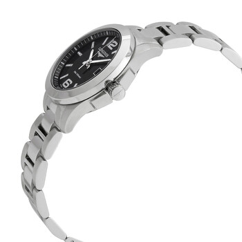 Silver-tone stainless steel case and bracelet. Fixed silver-tone stainless steel bezel. Black dial with silver-tone hands and index hour markers. Minute markers around the outer rim. Dial Type: Analog. Date display at the 3 o'clock position. Quartz movement. Scratch resistant sapphire crystal. Round case shape, case size: 29 mm. Fold over clasp. Water resistant at 300 meters / 1000 feet. Functions: date, hour, minute, second. Additional Info: original box, international warranty card, manual (complete accessories). Conquest Series. Luxury watch style. Watch label: Swiss Made. Longines Conquest Quartz Black Dial Ladies Watch L33764586.