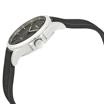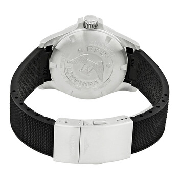 Stainless steel case with a black rubber strap. Fixed stainless steel bezel. Black dial with luminous grey hands and index hour markers. Arabic numerals mark the 6 and 12 o'clock positions. Minute markers around the outer rim. Dial Type: Analog. Luminescent hands and markers. Perpetual calendar. Longines calibre L288 quartz movement. Scratch resistant sapphire crystal. Solid case back. Round case shape. Case size: 41 mm. Band width: 20 mm. Fold over clasp with a push button release. Water resistant at 50 meters / 165 feet. Functions: perpetual calendar, date, hour, minute, second, battery eol indicator, shock resistant, magnetic resistant. Conquest V.h.p. Series. Dress watch style. Watch label: Swiss Made. Longines Conquest V.H.P. Black Dial Men's Watch L37164569.