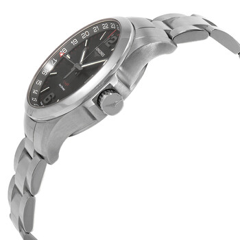 Stainless steel case with a stainless steel bracelet. Fixed stainless steel bezel. Black carved dial with luminous silver-tone hands and index hour markers. Arabic numerals appear at the 6 and 12 o'clock positions. Minute markers. 24 hour markers around the outer rim. Dial Type: Analog. Luminescent hands and markers. Date display at the 3 o'clock position. Longines calibre L287 quartz movement. Scratch resistant sapphire crystal. Screw down crown. Solid case back. Round case shape. Case size: 43 mm. Band width: 20 mm. Fold over clasp. Water resistant at 50 meters / 165 feet. Functions: date, hour, minute, second, 24 hours hand with time zone mechanism. Conquest V.H.P. Gmt Series. Casual watch style. Watch label: Swiss Made. Longines Conquest V.H.P. GMT Quartz Men's Watch L3.728.4.56.6.