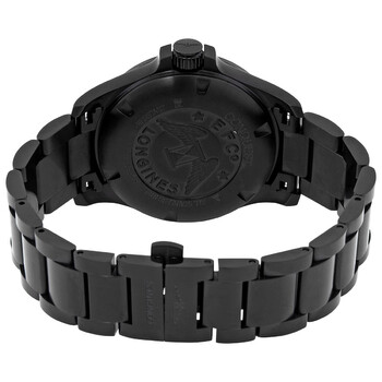 Black PVD stainless steel case and bracelet. Fixed black PVD stainless steel bezel. Silver dial with black hands and index-Arabic numerals hour markers. Minute markers around the outer rim. Dial Type: Analog. Luminescent hands and markers. Date display at the 3 o'clock position. Longines Calibre L288 quartz movement. Scratch resistant sapphire crystal. Pull / push crown. Solid case back. Round case shape, case size: 41 mm. Band width: 20 mm. Butterfly clasp. Water resistant at 50 meters / 165 feet. Functions: date, hour, minute, second. Conquest V.h.p. Series. Casual watch style. Watch label: Swiss Made. Longines Conquest V.H.P. Quartz Silver Dial Men's Watch L3.716.2.76.6.