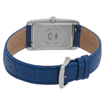 Silver-tone stainless steel case with a blue leather strap. Fixed silver-tone stainless steel bezel. Blue dial with silver-tone hands. Dial Type: Analog. One subdial displaying: small second. Longines Calibre L176 quartz movement. Scratch resistant sapphire crystal. Solid case back. Rectangle case shape, case size: 23 mm. Buckle clasp. Water resistant at 30 meters / 100 feet. Functions: hour, minute, small second. Additional Info: original box, international warranty card, manual (complete accessories). Dolce Vita Series. Luxury watch style. Watch label: Swiss Made. Longines Dolce Vita Quartz Blue Dial Ladies Watch L5.512.4.90.2.