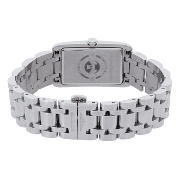 Silver-tone stainless steel case and bracelet. Fixed silver-tone stainless steel bezel. Silver-tone dial with blue hands and Roman numeral hour markers. Minute scale around the inner rim. Dial Type: Analog. One subdial displaying: small second. Longines Calibre L176 quartz movement. Scratch resistant sapphire crystal. Solid case back. Rectangle case shape, case size: 23 mm. Deployment with push button release clasp. Water resistant at 30 meters / 100 feet. Functions: hour, minute, small second. Additional Info: original box, international warranty card, manual (complete accessories). Dolce Vita Series. Luxury watch style. Watch label: Swiss Made. Longines Dolce Vita Quartz Silver Dial Ladies Watch L5.512.4.75.6.