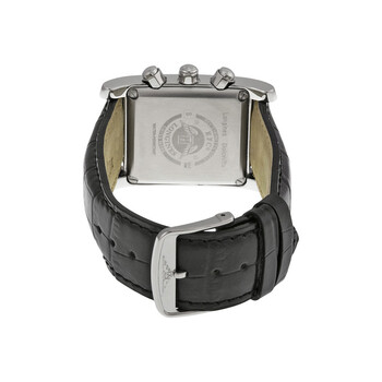 Stainless steel case with a black leather strap. Fixed stainless steel bezel. White dial with silver-tone hands and index and Arabic numeral hour markers. Arabic numeral marks the 12 o'clock position. Minute markers around the inner ring. Dial Type: Analog. Date display between 4 and 5 o'clock position. Chronograph - three sub-dials displaying: 60 second, 30 minute and 1/10th of a second. Quartz movement. Scratch resistant sapphire crystal. Solid case back. Case dimensons: 30 mm x 36.5 mm. Case thickness: 10.25 mm. Rectangle case shape. Tang clasp. Water resistant at 30 meters / 100 feet. Functions: chronograph, date, hour, minute, second. Dress watch style. Watch label: Swiss Made. Longines DolceVita Chronograph White Dial Leather Men's Watch L5.680.4.16.2.