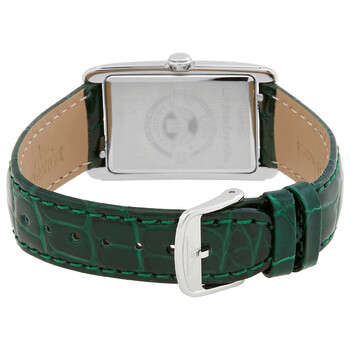 Silver-tone stainless steel case with a green alligator band. Fixed silver-tone stainless steel bezel. Silver-tone dial with blue hands and Roman numeral hour markers. Minute scale around the inner rim. Dial Type: Analog. One subdial displaying: small second. Longines Calibre L176 quartz movement. Scratch resistant sapphire crystal. Pull / push crown. Solid case back. Rectangle case shape, case size: 23 mm. Buckle clasp. Water resistant at 30 meters / 100 feet. Functions: hour, minute, small second. Additional Info: original box, international warranty card, manual (complete accessories). Dolcevita Series. Luxury watch style. Watch label: Swiss Made. Longines DolceVita Quartz Silver Dial Ladies Watch L5.512.4.71.A.