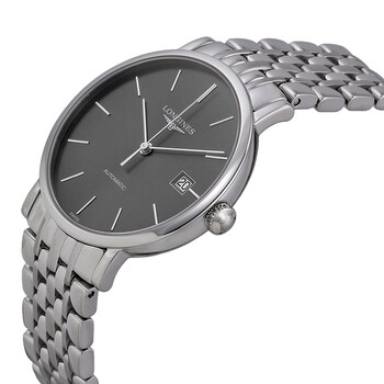 Silver-tone stainless steel case with a silver-tone stainless steel bracelet. Fixed silver-tone stainless steel bezel. Grey (sunbeam) dial with silver-tone hands and index hour markers. Dial Type: Analog. Date display at the 3 o'clock position. Longines Calibre L619 Automatic movement, based upon ETA 2892-A2, containing 21 Jewels, bitting at 28800 vph, and has a power reserve of approximately 42 hours. Scratch resistant sapphire crystal. Pull / push crown. Transparent case back. Round case shape, case size: 37 mm, case thickness: 8 mm. Band width: 19 mm. Triple fold over with safety release clasp. Water resistant at 30 meters / 100 feet. Functions: date, hour, minute, second. Elegant Series. Casual watch style. Watch label: Swiss Made. Item Variations: L4 810 4 72 6, L4-810-4-72-6, L4/810/4/72/6, L48104726. Longines Elegance Automatic Grey Dial Men's Watch L48104726.