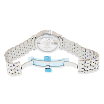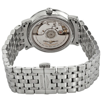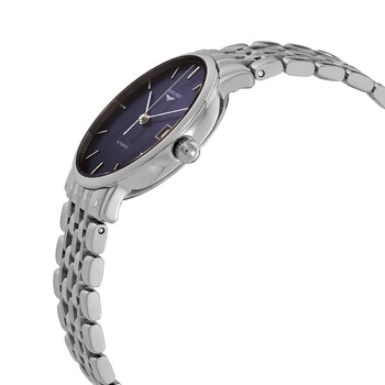 Stainless steel case with a stainless steel bracelet. Fixed stainless steel bezel. Blue dial with silver-tone hands and index hour markers. Dial Type: Analog. Date display at the 3 o'clock position. Longines calibre L619 automatic movement, based upon ETA 2892-A2, containing 21 Jewels, bitting at 28800 vph, and has a power reserve of approximately 42 hours. Scratch resistant sapphire crystal. Pull / push crown. Transparent case back. Round case shape. Case size: 34.5 mm. Band width: 19 mm. Fold over clasp with a push button release. Water resistant at 30 meters / 100 feet. Functions: date, hour, minute, second. Additional Info: original box, international warranty card, manual (complete accessories). Elegant Series. Luxury watch style. Watch label: Swiss Made. Longines Elegant Automatic Blue Dial 34.5 mm Watch L4.809.4.92.6.