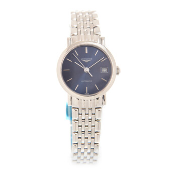 Silver-tone stainless steel case with a silver-tone stainless steel bracelet. Fixed silver-tone stainless steel bezel. Blue dial with silver-tone hands and index hour markers. Dial Type: Analog. Date display at the 3 o'clock position. Longines Calibre L592 automatic movement with a 40-hour power reserve. Scratch resistant sapphire crystal. Pull / push crown. Transparent case back. Round case shape. Case size: 25.5 mm. Hidden clasp. Water resistant at 30 meters / 100 feet. Functions: date, hour, minute, second. Additional Info: original box, international warranty card, manual (complete accessories). Luxury watch style. Watch label: Swiss Made. Item Variations: L43094926. Longines Elegant Automatic Blue Dial Unisex Watch L4.309.4.92.6.