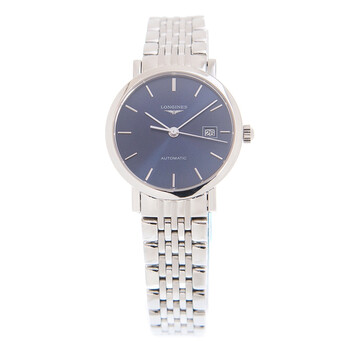 Silver-tone stainless steel case with a silver-tone stainless steel bracelet. Fixed silver-tone stainless steel bezel. Blue dial with silver-tone hands and index hour markers. Dial Type: Analog. Date display at the 3 o'clock position. Longines Calibre L592 automatic movement with a 40-hour power reserve. Scratch resistant sapphire crystal. Pull / push crown. Transparent case back. Round case shape. Case size: 29 mm. Deployment with push button release clasp. Water resistant at 30 meters / 100 feet. Functions: hour, minute, second. Additional Info: original box, international warranty card, manual (complete accessories). Luxury watch style. Watch label: Swiss Made. Item Variations: L43104926. Longines Elegant Automatic Blue Dial Unisex Watch L4.310.4.92.6.