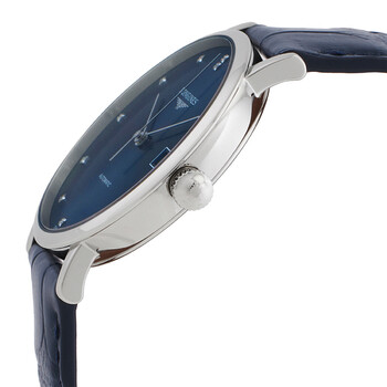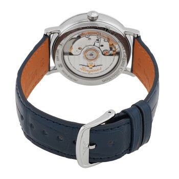 Silver-tone stainless steel case with a blue alligator leather strap. Fixed silver-tone stainless steel bezel. Blue dial with silver-tone hands and diamond hour markers. Dial Type: Analog. Date display at the 3 o'clock position. Longines Calibre L888 Automatic movement, based upon ETA A31.L11, containing 21 Jewels, bitting at 25200 vph, and has a power reserve of approximately 64 hours. Scratch resistant sapphire crystal. Transparent case back. Round case shape, case size: 37 mm. Tang clasp. Water resistant at 30 meters / 100 feet. Functions: date, hour, minute, second. Elegant Series. Dress watch style. Watch label: Swiss Made. Longines Elegant Automatic Diamond Blue Dial Unisex Watch L4.810.4.97.2.