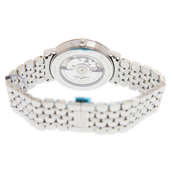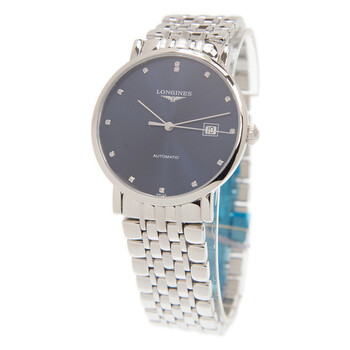 Silver-tone stainless steel case and bracelet. Fixed silver-tone stainless steel bezel. Blue dial with silver-tone hands and diamond hour markers. Dial Type: Analog. Date display at the 3 o'clock position. Longines Calibre L619/888 Automatic movement, based upon ETA 2892, containing 21 Jewels, bitting at 25200 vph, and has a power reserve of approximately 64 hours. Scratch resistant sapphire crystal. Pull / push crown. Transparent case back. Round case shape, case size: 39 mm, case thickness: 8.5 mm. Band width: 20 mm. Hidden clasp. Water resistant at 30 meters / 100 feet. Functions: date, hour, minute, second. Additional Info: original box, international warranty card, manual (complete accessories). Elegant Series. Luxury watch style. Watch label: Swiss Made. Longines Elegant Automatic Diamond Blue Dial Unisex Watch L4.910.4.97.6.