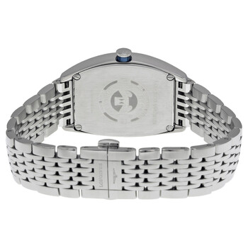 Stainless steel case with a stainless steel bracelet. Fixed stainless steel bezel. Black dial with silver-tone hands and Roman numeral hour markers. Minute markers around the outer rim. Dial Type: Analog. Date display at the 6 o'clock position. Small seconds sub-dial at the 6 o'clock position. Automatic movement. Scratch resistant sapphire crystal. Pull / push crown. Solid case back. Case dimensions: 33 mm x 38 mm. Case thickness: 11 mm. Tonneau case shape. Deployment clasp with push button. Water resistant at 30 meters / 100 feet. Functions: date, hour, minute, second. Dress watch style. Watch label: Swiss Made. Longines Evidenza Automatic Black Dial Stainless Steel Men's Watch L2.642.4.51.6.