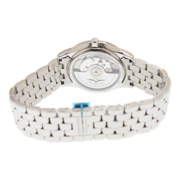 Stainless steel case with a stainless steel bracelet. Fixed stainless steel bezel. Blue dial with silver-tone hands and index hour markers. Minute markers around the outer rim. Dial Type: Analog. Date display at the 3 o'clock position. Longines calibre L888 automatic movement, based upon ETA A31.L11, containing 21 Jewels, bitting at 25200 vph, and has a power reserve of approximately 64 hours. Scratch resistant sapphire crystal. Pull / push crown. Transparent case back. Round case shape. Case size: 35.6 mm. Band width: 18 mm. Fold over clasp with a push button release. Water resistant at 30 meters / 100 feet. Functions: date, hour, minute, second. Additional Info: original box, manual (complete accessories). Flagship Series. Luxury watch style. Watch label: Swiss Made. Longines Flagship Automatic Blue Dial Ladies Watch L4.774.4.92.6.