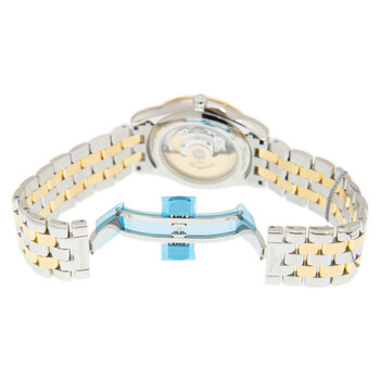 Stainless steel & plated yellow gold case with a polished stainless steel & plated yellow gold bracelet. Fixed bezel. Gold dial with yellow gold hands and index hour markers. Dial Type: Analog. Day of the week and date display at the 3 o'clock position. Longines Calibre L636 Automatic movement, based upon ETA 2836, containing 25 Jewels, and has a power reserve of approximately 38 hours. Scratch resistant sapphire crystal. Pull / push crown. Transparent case back. Round case shape, case size: 38.5 mm. Push button folding clasp. Water resistant at 30 meters / 99 feet. Functions: date, day, hour, minute, second. Flagship Series. Dress watch style. Watch label: Swiss Made. Longines Flagship Automatic Gold Dial Men's Watch L4.899.3.32.7.