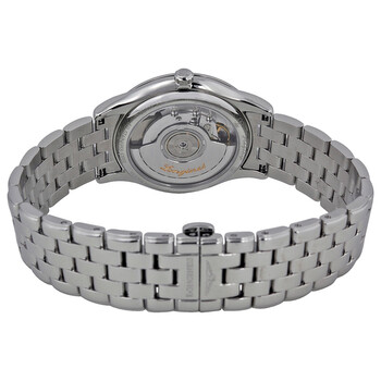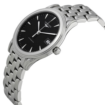 Stainless steel case with a stainless steel bracelet. Fixed stainless steel bezel. Black dial with silver-tone sword-shaped hands and index hour markers. Minute markers around the outer rim. Dial Type: Analog. Date display at the 3 o'clock position. Longines calibre L619 automatic movement, based upon ETA 2892-A2, containing 21 Jewels, bitting at 28800 vph, and has a power reserve of approximately 42 hours. Scratch resistant sapphire crystal. Pull / push crown. Skeleton case back. Round case shape. Case size: 35.4 mm. Case thickness: 7.5 mm. Band width: 20.3 mm. Band length: 8.5 inches. Deployment clasp. Water resistant at 30 meters / 100 feet. Functions: date, hour, minute, second. Flagship Series. Dress watch style. Watch label: Swiss. Item Variations: L4 774 4 52 6, L4-774-4-52-6, L4/774/4/52/6, L47744526. Longines Flagship Automatic Men's Watch L4.774.4.52.6.