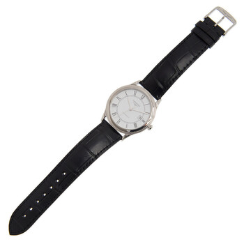 Silver-tone stainless steel case with a black alligator leather strap. Fixed silver-tone stainless steel bezel. White dial with silver-tone hands and Arabic numeral hour markers. Minute markers around the outer rim. Dial Type: Analog. Date display at the 3 o'clock position. Longines Calibre L619 Automatic movement, based upon ETA 2892-A2, containing 21 Jewels, bitting at 28800 vph, and has a power reserve of approximately 42 hours. Scratch resistant sapphire crystal. Pull / push crown. Transparent case back. Round case shape, case size: 38.5 mm. Band width: 20 mm. Buckle clasp. Water resistant at 30 meters / 100 feet. Functions: date, hour, minute, second. Additional Info: original box, international warranty card, manual (complete accessories). Flagship Series. Luxury watch style. Watch label: Swiss Made. Item Variations: L48744212. Longines Flagship Automatic White Dial Unisex Watch L4.874.4.21.2.