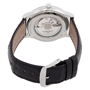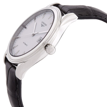 Silver-tone stainless steel case with a black leather strap. Fixed silver-tone stainless steel bezel. White dial with silver-tone hands and index hour markers. Minute markers around the outer rim. Dial Type: Analog. Date display at the 3 o'clock position. Longines Calibre L888 Automatic movement, based upon ETA A31.L11, containing 21 Jewels, bitting at 25200 vph, and has a power reserve of approximately 64 hours. Scratch resistant sapphire crystal. Transparent case back. Round case shape, case size: 40 mm, case thickness: 8.7 mm. Band width: 21 mm. Tang clasp. Water resistant at 30 meters / 100 feet. Functions: date, hour, minute, second. Flagship Series. Casual watch style. Watch label: Swiss Made. Longines Flagship Automatic White Dial Watch L4.984.4.12.2.