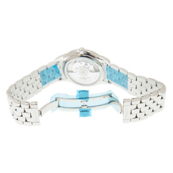 Stainless steel case with a stainless steel bracelet. Fixed stainless steel bezel. White dial with silver-tone hands and Roman numeral hour markers. Minute markers around an inner ring. Dial Type: Analog. Date display at the 3 o'clock position. Automatic movement. Scratch resistant sapphire crystal. Pull / push crown. Transparent case back. Round case shape. Case size: 36 mm. Band width: 18 mm. Deployment clasp with a push button release. Water resistant at 30 meters / 100 feet. Functions: date, hour, minute, second. Additional Info: original box, manual (complete accessories). Flahship Series. Luxury watch style. Watch label: Swiss Made. Longines Flahship Automatic White Dial Watch L47744216.